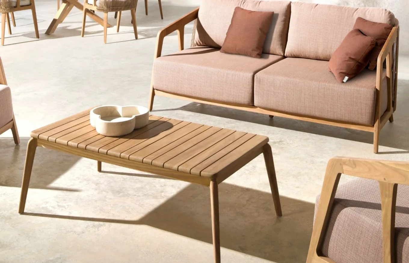 La colección de exterior Río de Joenfa ofrece muebles cálidos y rústicos, perfectos para jardines y terrazas, fabricados con materiales de alta calidad. La colección está diseñada para resistir el clima y brindar comodidad. Joenfa es una empresa española especializada en mobiliario de interior y exterior, destacando por su uso de materiales naturales y sostenibles como la teca reciclada y fibras artesanales.