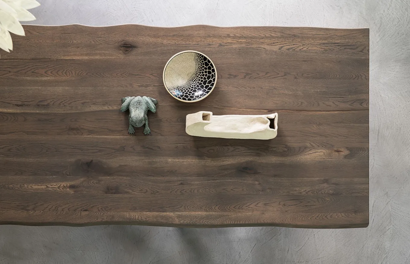 Mesa de comedor Cross combina la ligereza estética con una gran solidez. Con sus geometrías, Cross da profundidad a los pequeños espacios. El diseño de Rivanova es muy funcional, fácil de interpretar, pero al mismo tiempo rico en detalles dados por los materiales utilizados: madera natural, cristal y hierro. Rivanova selecciona la madera por su singularidad, realzada por imperfecciones naturales que son consideradas parte integrante del resultado final que se quiere conseguir.