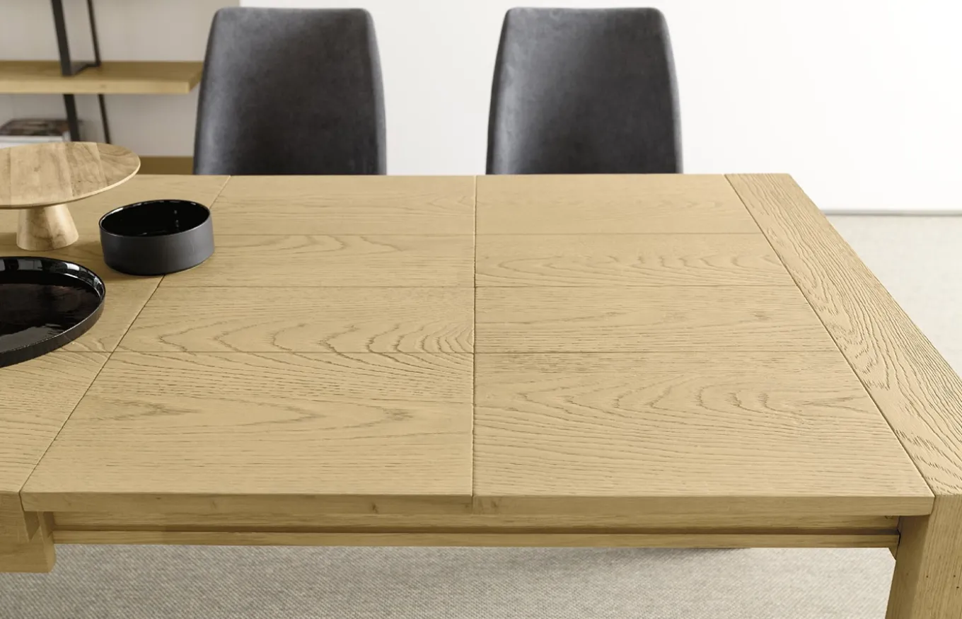 La mesa de comedor extensible Montreal tiene un estilo es nórdico y su esencia arrasa con la modernidad del entorno. Su sistema de apertura es tradicional, es decir, uno de los lados de la mesa se extiende hacia el extremo dejando espacio para colocar uno o dos extensibles de 45 cm cada uno.