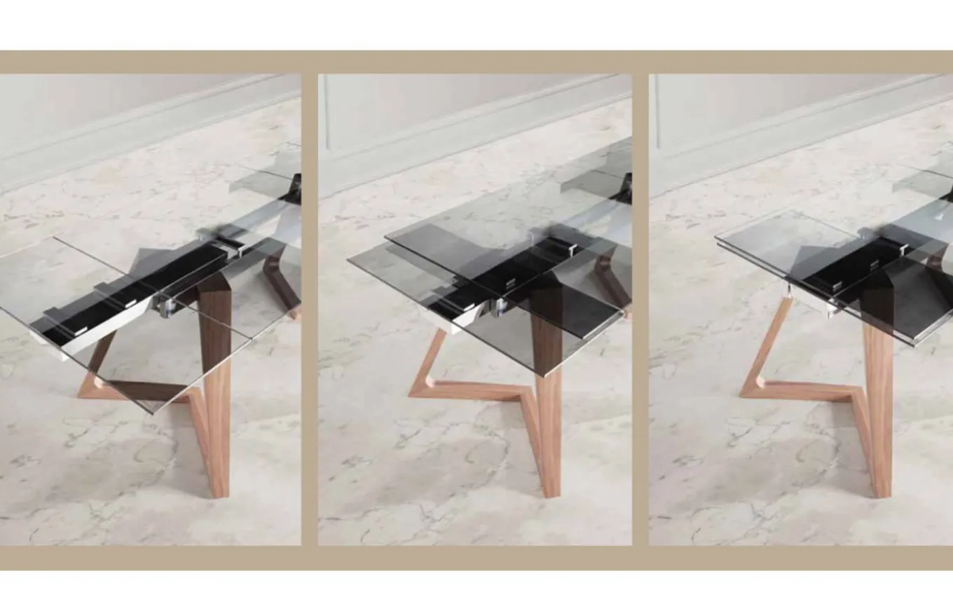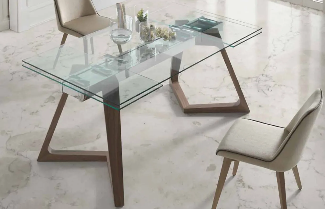 La mesa de comedor extensible Nil presenta un un diseño esmerado y cuidado. La creatividad se junta con el estudio de las formas para que tengas en tu hogar una pieza de diseño. Está fabricada con un tablero de cristal rectangular de 12 mm de grosor que junto con el soporte de metal y las patas de madera maciza dan un toque de personalidad al hogar.