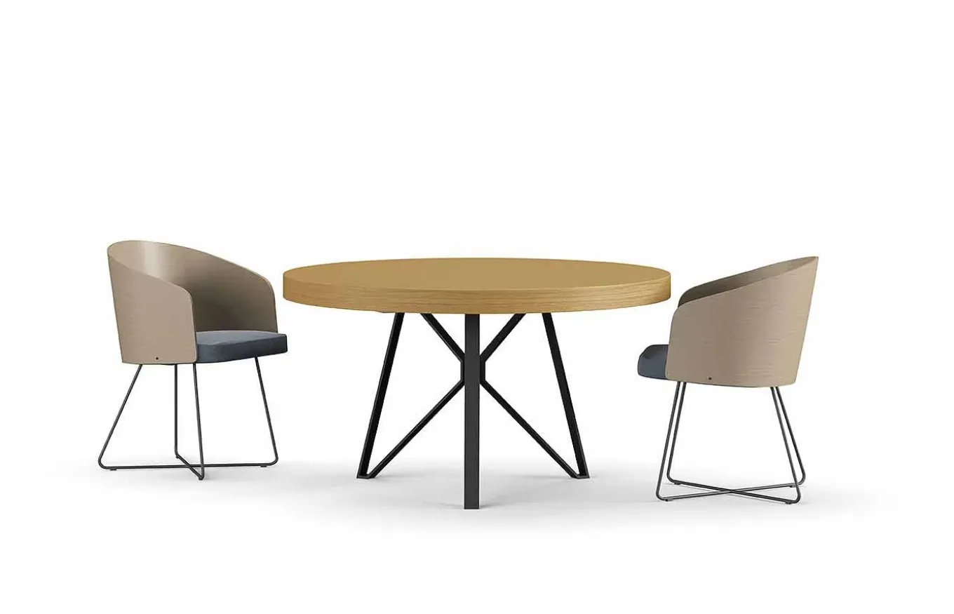 La mesa de comedor extensible redonda Kumo conquista por su robustez y presencia sin restarle espacio a la estancia. Su diseño destaca por la combinación de materiales, metal y chapa de madera natural, ambos son materiales que destacan por su dureza, elegancia y resistencia.