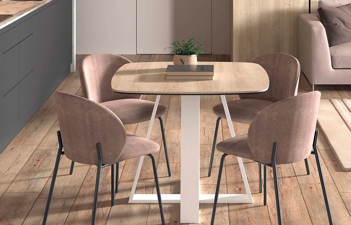 La mesa de comedor fija 237 es ideal para zonas reducidas. Se trata de una mesa con un tablero cuadrado pero con opción a elegir una medida más amplia y crear así una mesa con forma rectangular. Será la pieza perfecta para los amantes del buen gusto.