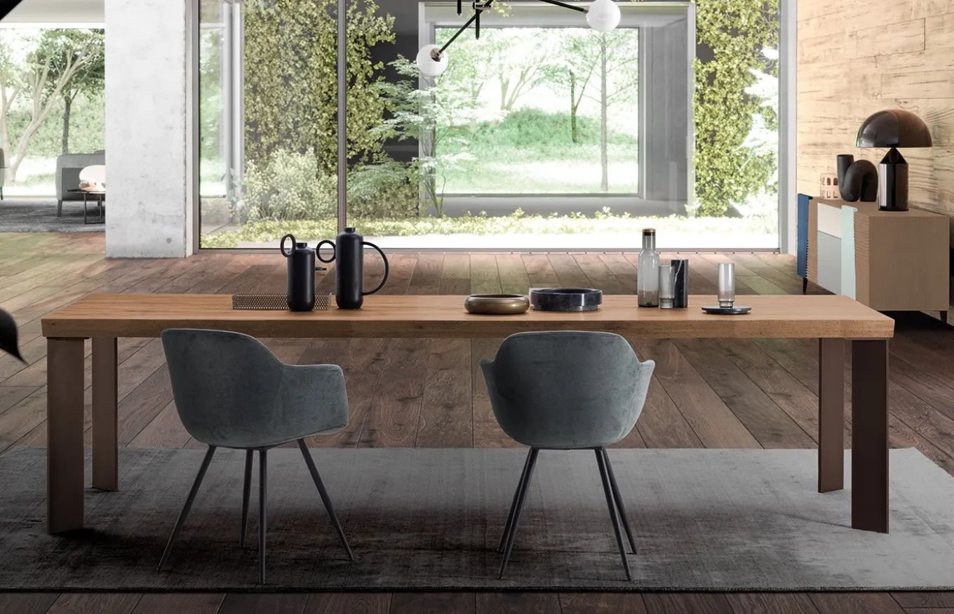 Mesa de comedor de madera Master perteneciente a la colección Free Tables de , una marca de diseño y fabricación italiana. La colección Free Tables consiste en un innovador sistema a través del cual puedes configurar tu mesa eligiendo el modelo de tablero, de patas y sus acabados, obteniendo múltiples combinaciones. Además, si las medidas de serie del tablero no te encajan, se puede hacer a medida (siempre respetando los límites admitidos). En este caso tenemos una mesa de madera con un tablero Máster combinado con patas Line.