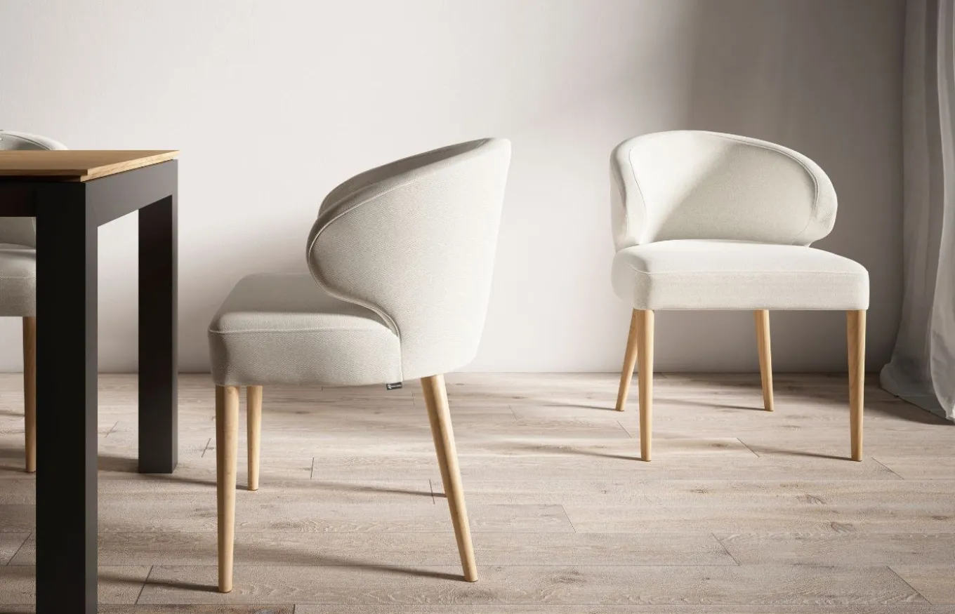 El sillón de comedor Infinity te envuelve en una sensación de confort y elegancia. Su diseño curvo y el suave tapizado invitan a relajarse y disfrutar de momentos inolvidables alrededor de la mesa. La calidez de la madera de haya aporta un toque natural y sofisticado.