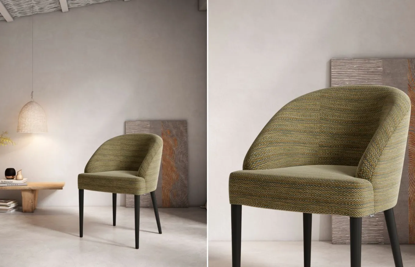 Versátil y adaptable, el sillón de comedor Round se adapta a cualquier estilo. Su diseño atemporal, combinado con la calidez de la madera de haya y la suavidad del tapizado, lo convierten en una pieza clave para crear ambientes acogedores y sofisticados. Su aspecto curvo y envolvente invita a relajarse y disfrutar de momentos especiales.