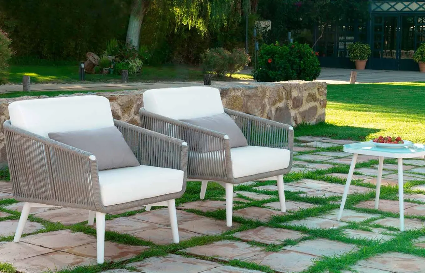 - Cuerda 01: 100% tejido de poliéster, protegida contra los rayos UV. Extremadamente fuerte y resistente, variedad de texturas y trenzados. Fácil limpieza, su mantenimiento no requiere más que de un poco de agua y jabón neutro.