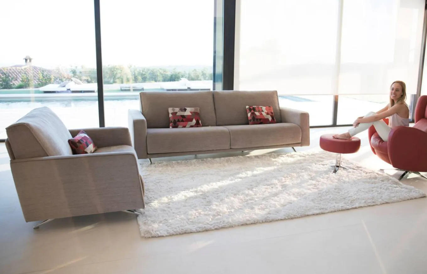 Sofá Boston dispone de gran variedad de opciones, como el sofá de grandes dimensiones con dos o tres asientos adaptables a cada usuario, gracias a la construcción del respaldo ligeramente flexible. La combinación de líneas rectas y curvas es fundamental en este diseño racional y contemporáneo.