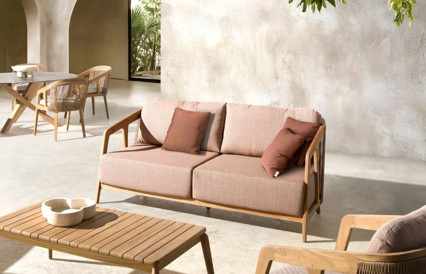 La colección de exterior Río de Joenfa ofrece muebles cálidos y rústicos, perfectos para jardines y terrazas, fabricados con materiales de alta calidad. La colección está diseñada para resistir el clima y brindar comodidad. Joenfa es una empresa española especializada en mobiliario de interior y exterior, destacando por su uso de materiales naturales y sostenibles como la teca reciclada y fibras artesanales.