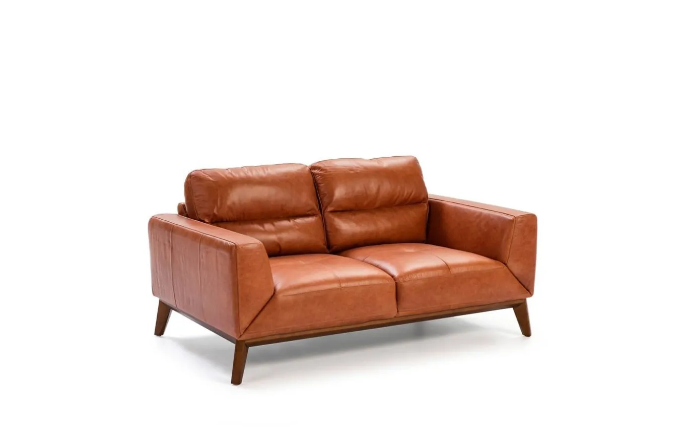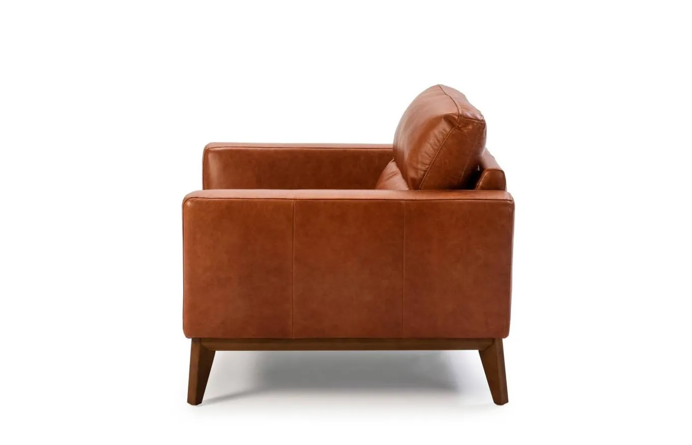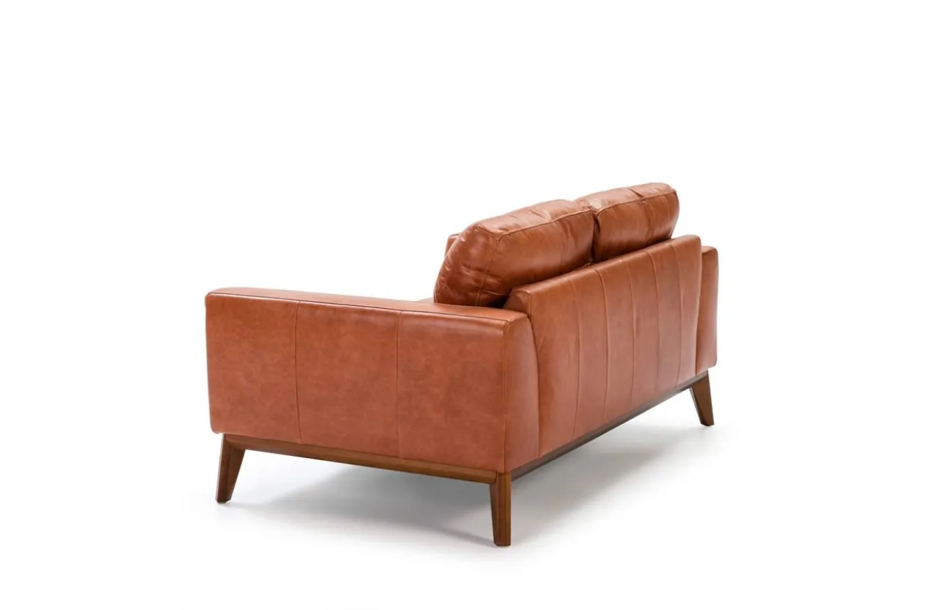 - Tapizado en piel de origen vacuno de 1.5 mm de espesor, con patas de madera color nogal.