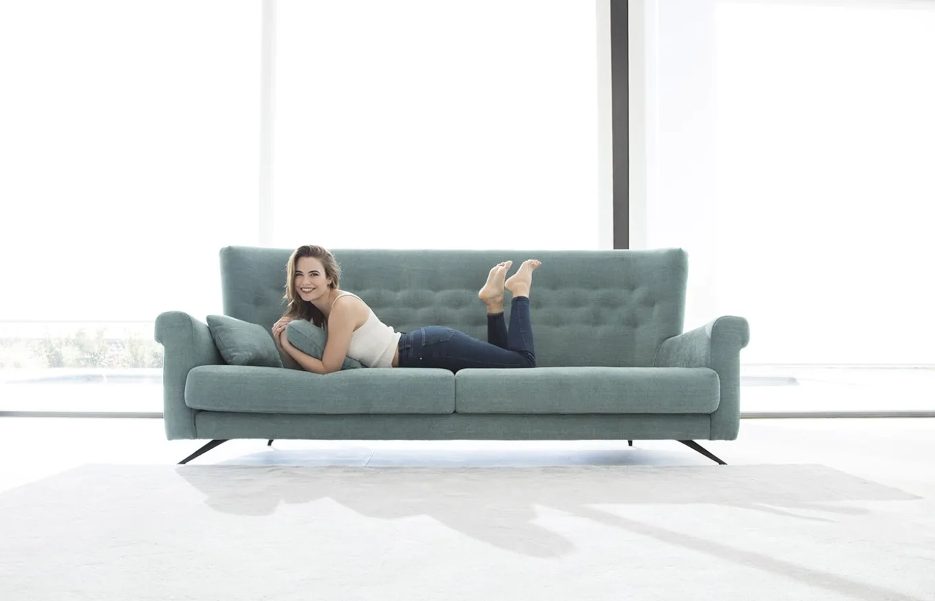 El sofá Nina es una pieza espectacular inspirada en los clásicos sofás de rombos de los años 70. Tiene un diseño de respaldo alto y sentada recta extra cómoda con unos brazos redondeados que le dan el toque tradicional. Las patas son de madera estilo nórdico.