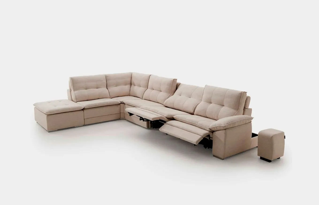 El sofá relax Gio de Acomodel es una pieza de mobiliario diseñada para ofrecer comodidad. Gio incorpora un diseño de doble sentada fabricado con un cojín mullido de espuma de poliuretano Acofoam con viscoelástica 50 kg de 7 cm de grosor.