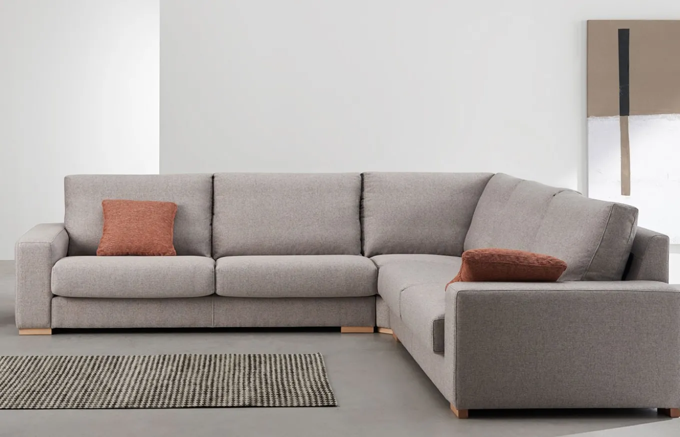 Sofá rinconera de estilo atemporal y elegante. Es un sofá muy camaleónico que se adapta perfectamente a diferentes estilos, dependiendo de la tapicería que se escoja. Su sistema modular es muy amplio y variado, lo cual nos permite hacer infinidad de combinaciones. Pero lo mejor de este sistema es su sentada de muelle zig-zag que, junto con las gomas de alta calidad utilizadas, y los grandes respaldos de fibra hacen que sea increíblemente cómodo.