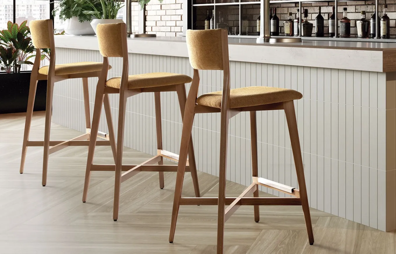 El taburete Leger destaca por su diseño pintoresco y fresco, su apariencia es rústica pero con un toque contemporáneo. Leger tiene una estructura atípica que le diferencia del resto. Su respaldo sobresale, sus cuatro patas se unen en cruz y su asiento es ideal para cualquier rincón de la estancia.