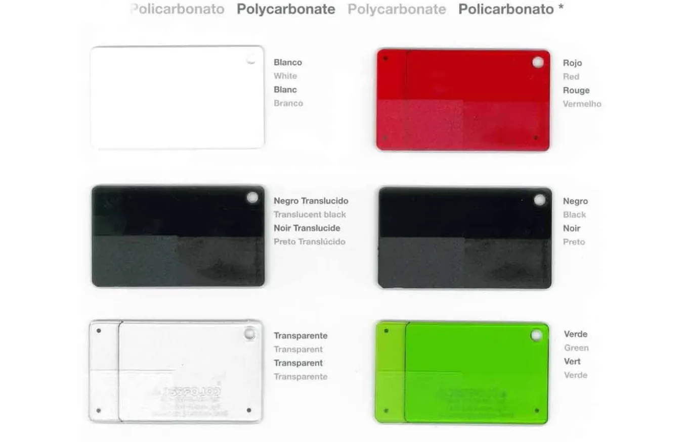 - Asiento en inyección de policarbonato translúcido u opaco reciclable anti UV, con colores disponibles según muestrario adjunto.